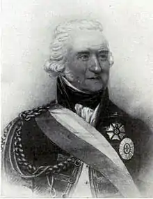When Portugal decided to join the French Revolutionary Wars, a corps was sent to assist the Spanish army in the War of the Pyrenees, under the command of Forbes, who replaced the Marques de Minas, his old commander in the 1762 campaigns, when the latter fell ill.[1] The Portuguese soldiers behaved well, but the commanders of the Spanish army were always at variance, and Forbes himself had much trouble with his adjutant-general, Gomes Freire de Andrade.[2] The French republicans defeated the combined Spanish-Portuguese army, and Forbes returned to Portugal with his corps. His reports on the expeditiondespatches to the Portuguese government. He was too old to seek further active service, so he went to Brazil with Queen Mary I, the prince regent, and the court when they fled from the forces led by Jean-Andoche Junot, and on arrival there he was appointed governor of Rio de Janeiro. He died there on 8 April 1808.