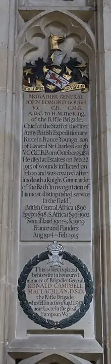 Brigadier-General Sir John Edmond Gough VC, KCB, CMG (25 October 1871 – 22 February 1915), was a British Army officer and a recipient of the Victoria Cross, the highest award for gallantry in the face of the enemy that can be awarded to British and Commonwealth forces.