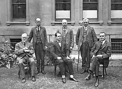 As Premier, Gunn established the State Bank of South Australia and developed Colonel Light Gardens, one of Australia's first planned suburbs. He also improved public service working conditions, built more roads and encouraged rural settlement.[3] A "Thousand Homes Scheme" was carried out to improve the quality and supply of housing for needy families, spending on education was increased, provided better medical facilities and new junior technical schools, higher wages for teachers, and more scholarships. Working conditions were also improved, while measures were undertaken to improve conditions in rural areas "with a visionary afforestation programme in addition to better roads and improvements in access to bore water and technical expertise in agriculture."[4] His reforms impressed many and even received grudging praise from the previously hostile media, who realised he had mellowed into a more moderate figure than the strike leader of 15 years prior.