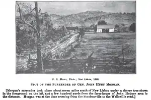 Morgan reportedly surrendered under what was called the "Surrender Tree". The location was at the northernmost point in which a Confederate command pierced Northern territory during the Civil War,[2] except for the St. Albans Raid in Vermont.[3]