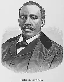 John H. Smythe (July 14, 1844 – September 5, 1908) was the United States ambassador to Liberia from 1878 to 1881 and from 1882 to 1885. Before his appointment, he had various clerkships in the federal government in Washington, DC, and in Wilmington, North Carolina. Later in his life he took part in a number of leading African American organizations and was president of a Reformatory School outside of Richmond, Virginia.
