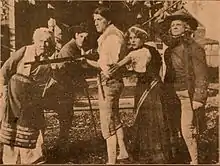 The only known cast credits are for Martin Faust, Frank H. Crane, William Russell and Violet Heming.[1][2] The other cast credits are unknown, but many 1910 Thanhouser productions are fragmentary.[6] In late 1910, the Thanhouser company released a list of the important personalities in their films. The list included G.W. Abbe, Justus D. Barnes, Frank H. Crane, Irene Crane, Marie Eline, Violet Heming, Martin J. Faust, Thomas Fortune, George Middleton, Grace Moore, John W. Noble, Anna Rosemond, Mrs. George Walters.[8] Bowers lists this as the first known credit of William Russell, formerly of the Biograph Company. Russell would become one of the most important actors of the company until his final departure in 1913.[9] It is not the earliest known appearance by Russell, as he is shown in a film still of A Thanksgiving Surprise.[10]
