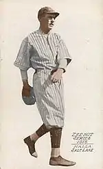 Halla was then purchased by the American Association's Louisville Colonels and stayed with them for the next three seasons.[2][6] In 1908, Halla had a win-loss record of 23-16 while pitching 336 innings, and in 1909, he went 17-12.[2] However, he then went 10-23 in 1910 to lead the league in losses.[7] He went to the Pacific Coast League for two seasons after that and posted two more losing records.[2]