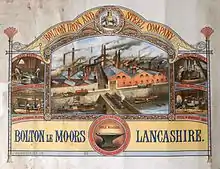 In 1860, partners in B. Hick and Son, John Hick and William Hargreaves joined Thomas Lever Rushton's brother-in-law Henry Sharp as partners in Sharp and Eckersley, formerly Rushton and Eckersley before Rushton's retirement from the firm in 1859. The three partners Sharp, Hick and Hargreaves formed the Bolton Iron & Steel Company;[42][43] situated next door to Rothwell's Union Foundry (on the site of Bolton's old bus station) the company supplied basic metals required by the major manufacturers in the area.[66] Bessemer steel making began about 1860[67] – four six-ton Bessemer converters were installed during the 1860s,[68] and experiments with the Sieman's open-hearth process began in 1867.[69] Rolling, casting and forging equipment was installed, its products included steel deck beams for ships and sheet metal for shovels,[70] during 1865 Bolton Iron & Steel cast the largest anvil block made in England, weighing 210 tons. By 1869 the company was making open hearth steel and manufacturing steam hammers to the design of Francis Webb.[69][71] Hick's nephew[63] became a shareholder following incorporation on 9 June 1876.[72]
