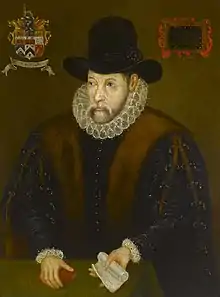John Hooker (or "Hoker") alias John Vowell (c. 1527–1601) of Exeter in Devon, was an English historian, writer, solicitor, antiquary, and civic administrator. From 1555 to his death he was Chamberlain of Exeter. He was twice MP for Exeter in 1570/1 and 1586, and for Athenry in Ireland in 1569 and wrote an influential treatise on parliamentary procedure. He wrote an eye-witness account of the siege of Exeter during the Prayer Book Rebellion in 1549. He spent several years in Ireland as legal adviser to Sir Peter Carew, and following Carew's death in 1575 wrote his biography. He was one of the editors of the second edition of Raphael Holinshed's Chronicles, published in 1587. His last, unpublished and probably uncompleted work was the first topographical description of the county of Devon. He founded a guild of Merchant Adventurers under a charter from Queen Mary.[2] He was the uncle of Richard Hooker, the influential Anglican theologian.[3]