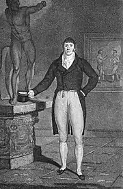 John Jackson was born in London in 1768 to a middle class family, originally from Worcestershire. His father was an eminent builder.[4] In an era when the great majority of prizefighters came from lower working class backgrounds, Jackson's middle class background led to his nickname of 'Gentleman' Jackson.