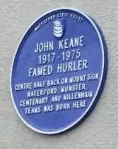 In 2009 the Waterford City Trust erected a blue heritage plaque on the house where John was born in Barrack street, Waterford and in 2010 a long overdue biography of John was published – THE UNCONQUERABLE KEANE: John Keane and the rise of Waterford hurling by David Smith.