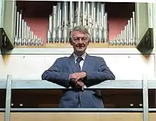 ![]() John Keys in front of the Marcussen & Søn organ at St Mary's Church, Nottingham | |