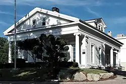 One of a cluster of outstanding Greek Revival houses on North Main Street, built by early mill-owners and prosperous merchants in the downtown area after the 1843 fire. This building, like the majority of the others has certain signature elements reminiscent of Russell Warren's work, most notably the cantilevered "flying staircase", floor plan and moulding details. The high quality of design and workmanship may be attributable to Russell Warren, a prominent Rhode Island architect and proponent of the Greek Revival. The high architectural quality, the relative scarcity of buildings of this age and type, and their association with figures important in the industrial and commercial development of Fall River.[2]