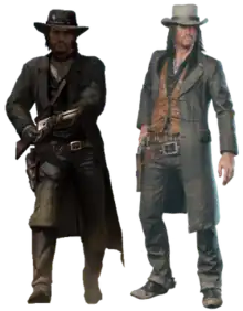 ![]() John Marston as he appears in Red Dead Redemption (left) and Red Dead Redemption 2 (right) | |