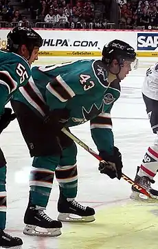 ![]() McCarthy with the San Jose Sharks in 2010 | |||