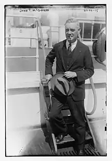 Born into a Roman Catholic family, McGovern soon became involved in the Labour movement and anarchism. Active in opposition to the First World War, he joined the Anti- Communist Federation and became its treasurer, but soon left after disagreements with Guy Aldred.[1] He was a conscientious objector.[2] He emigrated to Australia in 1923, but soon returned and became a prominent member of the Independent Labour Party (ILP), at the time linked to the Labour Party. In 1929 he was elected to Glasgow City Council, a position he held for two years.[3]