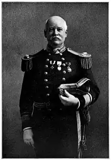 Entering the volunteer navy, he was appointed acting master's mate on March 8, 1862, serving on the Reliance and the Yankee.[2] He was promoted to acting master on May 8, 1862, and ordered to command the USS Wyandank in the Potomac Flotilla. He served on the Potomac and Rappahannock Rivers until February 1863, when he was detached from the Wyandank and ordered to the Florida as navigator. He served on the Florida in the blockade off Wilmington, North Carolina until October 1864, when the ship went to New York for repairs. In November of the same year he was detached from the Florida and ordered to the USS State of Georgia as navigator; arrived off Wilmington, North Carolina the day after the capture of Fort Fisher, his ship being then ordered to reinforce the fleet off Charleston, South Carolina. While there he took part in the Bulls Bay Expedition, which was one of the causes of the evacuation of Charleston by the Confederates.[1]