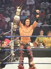 On April 15, Morrison was drafted to the SmackDown brand as part of the 2009 Supplemental Draft.[87] On the April 17 episode of SmackDown, he defeated R-Truth.[88] On the May 1 episode of SmackDown, Morrison engaged in a backstage fight with Chris Jericho after Jericho slapped him, turning face in the process for the first time in his career.[89] Later that same night, Morrison defeated Shelton Benjamin, beginning a feud between the two. On the May 7 episode of Superstars, Morrison lost a match to Jericho after a distraction by Benjamin.[90] Morrison continued to score victories over Benjamin in singles and tag team matches before defeating him on May 17 at Judgment Day.[91] During this time, Morrison would soon become wildly popular with fans. On the June 16 episode of SmackDown, Morrison lost a critically acclaimed match against Edge, in which the commentators described it as a "third main event". On the July 31 episode of SmackDown, Morrison had his first World Heavyweight Championship match against Jeff Hardy, but failed to win the title.[92]