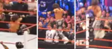 On the April 11 episode of Raw, Morrison participated in a five-man gauntlet match for the #1 contender's spot for the WWE Championship, but was eliminated by R-Truth.[119] The next week on Raw, Morrison challenged R-Truth to a match with the stipulation that if Morrison won, he would take Truth's place in the steel cage match at Extreme Rules. Truth accepted and lost the match, making Morrison the new #1 contender.[120] After the match, Truth viciously attacked Morrison.[121] At Extreme Rules on May 1, R-Truth interfered in the WWE Championship steel cage match, attacking Morrison to prevent him from winning the match.[122] The next night on Raw, Morrison was attacked by Truth again, prior to a scheduled match between the two which did not happen as a result.[123] Morrison then underwent surgery to correct a legitimately pinched nerve in his neck.[124] Morrison initially returned on the June 13 episode of Raw, but Truth attacked him again prior to their scheduled match, re-injuring him.[125] Morrison returned again on the July 25 episode of Raw, attacking R-Truth.[126] At SummerSlam on August 14, Morrison, Kofi Kingston and Rey Mysterio defeated R-Truth, Alberto Del Rio and The Miz.[127] The following night on Raw, Morrison defeated R-Truth in a falls count anywhere match to end their feud. At Night of Champions on September 18, Morrison competed in a fatal four-way match for the United States Championship, also involving Alex Riley, Dolph Ziggler, and Jack Swagger, with Ziggler retaining his title.[128] Morrison then challenged Cody Rhodes for the Intercontinental Championship at Hell in a Cell on October 2, but failed to win the title.[129] Following this, Morrison went on a losing streak, lasting a number of weeks.[130] On the November 7 episode of Raw, Morrison picked up his first victory in three months, defeating United States Champion Dolph Ziggler in a non-title match. Morrison challenged Ziggler for the championship at Survivor Series on November 20 but lost.[131]