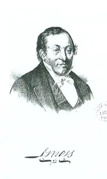 John Moss (1771 in London, England[1] – 5 April 1847[1] in Philadelphia, Pennsylvania) was a Jewish merchant, shipping magnate, and civic leader. He emigrated to the United States as a glass engraver from London.[2]: 184, 236 [3][4][5] Moss soon turned to other ventures after glass engraving proved insufficient to sustain a decent wage.[2]: 186 He opened a dry goods store in 1807 and soon became a major importer, eventually owning a small merchant fleet.[2]: 186 In 1823, he turned control of the business to his brothers and turned his attention to various civic enterprises. He was a founding member of the Musical Fund Society. He served as a steward of the Society of Sons of St. George a mutual-aid society for former Englishmen like himself and was a benefactor of the Philadelphia Orphan Asylum.[4] In 1825, he acted as judge of engraved glass during the Franklin Institute's second exposition of American craftsmanship.[2]: 349, 489 .In 1828 he entered into politics by being elected to the Philadelphia City Council's lower house, the Common Council, on the Jacksonian Democratic Party ticket. It was in this capacity that he played a role in the establishment of the Wills Eye Hospital.[2]: 328 Later in life he became a supporter of Isaac Leeser's American Jewish Publication Society. In 1840, in the wake of the Damascus Affair Moss led a protest committee from the city of Philadelphia.[4]
