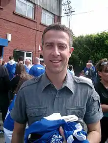 ![]() O'Neill celebrating Queen of the South's run to the 2008 Scottish Cup Final. | |||