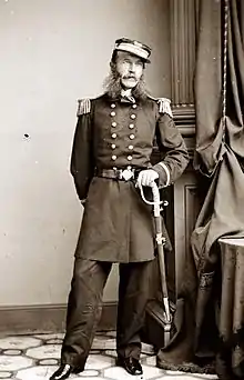 After the Confederates fired on Fort Sumter and President Lincoln's declaration of a blockade, Bankhead was ordered to USS Susquehanna,[lower-alpha 1] a side-wheel steamer carrying fifteen guns launched in 1850.[1] In August Susquahanna participated in the joint army-navy expedition to Cape Hatteras, North Carolina. On August 28 the Union naval force, including Susquahanna, bombarded the forts guarding Hatteras Inlet as troops landed. The following day the bombardment continued until the forts finally surrendered. Bankhead criticized the way the attacks were carried out and later wrote Captain Gustavus Fox, the Assistant Secretary of the Navy and an old shipmate, that the forts could have been taken in much less time:[1]