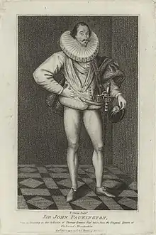Sir John Pakington (1549 – 18 January 1625) of Aylesbury was a courtier in the reigns of Elizabeth I and James I. He was a favourite of Elizabeth's who nicknamed him "Lusty Pakington" for his physique and sporting abilities. Away from court he held a number of official positions including Sheriff of Worcestershire in 1595 and in 1607.