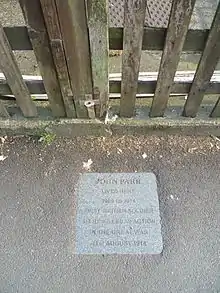 On the 100th anniversary of Parr's death a memorial paving stone was laid in the pavement outside his home at 52 Lodge Lane. The unveiling ceremony being attended by about 300 people, including local dignitaries and Parr family members, one of whom read a letter from his mother to the War Office written in October 1914 enquiring about his fate. A memorial "standing stone" nearby, to bear a plaque with further details of Parr's life and death, is planned. A plaque has also been placed in the golf club where he worked as a caddie.[6][7]