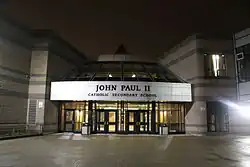 John Paul II Catholic Secondary School, often referred to as JPII, John Paul, or Jp; is a secondary school in London, Ontario. It is administered by the London District Catholic School Board. It is located at 1300 Oxford Street East, at the northeast corner of Oxford and Highbury Avenue, next to Fanshawe College and Robarts School for the Deaf. The property is quite large and occupies the corner of Oxford and Fanshawe.