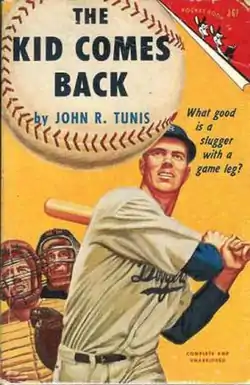 In 1940 Tunis received $200 from his publisher to visit the Dodgers' spring training camp in Clearwater, Florida. He then began work on his first baseball novel.[4] The Kid from Tomkinsville became the first in a series of eight books about the Brooklyn Dodgers. In it, Tunis introduced rookie pitcher Roy Tucker and his teammates: "Bones" Hathaway, "Razzle" Nugent and "Fat Stuff" Foster. Tunis says in a note at the beginning of the book that "all the characters in this book were drawn from real life."[25] Though his papers only list Tucker as "Number 36", they do say that, among others, "Gabby" Gus was based on Leo Durocher and Dave Leonard was inspired by Luke Sewell.[12]: 155 Kirkus gave it another starred review, saying it "struck a new note".[26] Tucker's story continues in 1941's World Series.