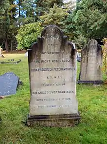 Rawlinson died, unmarried,[2] at his chambers in 5 Crown Office Row, Temple, London, after ten days' illness with pleurisy[6] at the age of 65, and was buried at Brookwood Cemetery, Woking, Surrey.