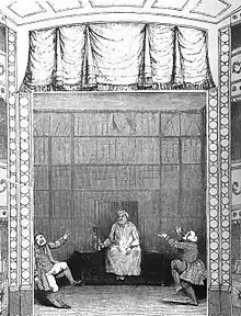 As a clerk in Gosling's Bank on Fleet Street, Reeve with colleagues hired every two weeks Pym's Theatre, Wilson Street, off Gray's Inn Road.[1] Pym was an ex-actor, who had fitted up an assembly room as an upmarket "private theatre", a place for well-supported amateur theatricals.[2] Finding himself in obscure parts, Reeve hired the house on his own account for £10, and played Othello, with his friend George Herbert Bonaparte Rodwell as Roderigo, and Sylvester Daggerwood, an actor, in a farce based on New Hay at the Old Market George Colman the younger. He repeated "Sylvester Daggerwood" on 8 and 9 June 1819 at Drury Lane, in benefits for Thomas Rodwell and Gesualdo Lanza; and then played it for a few nights at the Haymarket Theatre.[1]