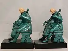 The Encyclopedia of Bookends by Louis Kuritzky contains many of his signed bookends including Dante Standing, Washington Bust, Man Reading, Deep in Thought, Cellist, as well as numerous unsigned bookends: Potter, Jester Lion Indian Scout, Searching Indian, Echo done for Armor Bronze; Washington Crossing the Delaware, Pirate with Sword and Musket, Roman and Scroll for K&O; and several unnamed works for J.B. Hirsch.