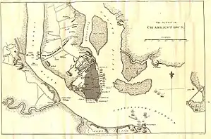 Though the Americans defeated the British at the Battle of Cowpens in January 1781, they could not drive the British back to Charleston until June 1781, when General Nathanael Greene arrived with more troops.[24] The British held Charleston until December 14, 1782. Rutledge's term of office had already ended, and he did not run again because of term limits.[25] A few weeks after leaving the governorship, Rutledge was again elected to the Continental Congress, where he served until 1783. In 1784, he was appointed to the South Carolina Court of Chancery, where he served until 1791.