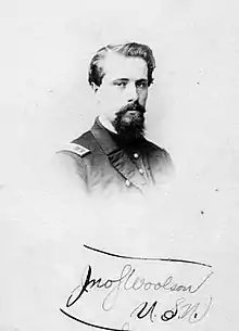 Born in Tonawanda, New York, Woolson received an Artium Baccalaureus degree in 1860 and an Artium Magister degree in 1863 from Wesleyan University. Interrupting his legal education to serve in the American Civil War, he was an assistant paymaster in the United States Navy from 1862 to 1865 aboard the USS Housatonic (sunk by the submarine torpedo, H.L. Hunley) and the USS Monadnock. Following the war, he relocated to Iowa, where he read law to enter the bar in 1866. He was in private practice in Mt. Pleasant, Iowa from 1866 to 1891. While in practice, he served as a member of the Iowa Senate from 1876 to 1881, and from 1885 to 1891.[1][2]