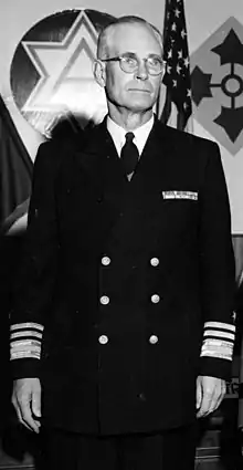 Joining the fleet in 1926, Sylvester served in 1937 as flag lieutenant to Admiral Harry E. Yarnell, commander of the United States Asiatic Fleet, and married Yarnell's daughter Ruth. Much of his career was spent in the Pacific or East Asia, including postings to Shanghai, Tsingtao, Hong Kong and the Philippines.[2] He served as commanding officer of the USS Missouri (BB-63) from 18 October 1951 to 4 September 1952 while the battleship was serving as flagship to Rear Admiral James L. Holloway, Jr., the commander of the cruiser force, United States Fleet Forces Command between deployments to the Korean War. Promoted to rear admiral in 1953, he was made special assistant to the chief of the Armed Forces Special Weapons Project in California. In 1955 Sylvester served as Task Force commander for Operation Wigwam, a test of an underwater detonation of a nuclear bomb. He served as Commander, Amphibious Forces, United States Pacific Fleet, from 1958 to 1960. From 1960 to 1965 he served as Deputy Chief of Naval Operations for Logistics, and retired in 1965 with the rank of vice admiral.[3]