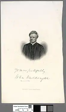 Waddington was born in Leeds in Yorkshire on 10 December 1810, to George and Elizabeth Waddington. At the age of fifteen he began to preach in the cottages of the neighbours. Before he was 19 he preached for Airedale College, the demand for student-preachers being greater than the supply. He then entered Airedale College, and, after a brief theological course under William Vint, was ordained pastor of the congregational church in Orchard Street, Stockport, on 23 May 1833. At Stockport he introduced Sunday schools connected with the congregationalist churches. He also conducted a government enquiry into distress and poverty in the town, the results of which were published in a blue-book.[1]
