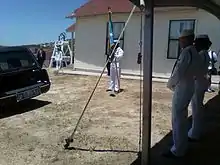 In his retirement he made many appearances at events honoring veterans.[14] On 25 March 2009, he attended National Medal of Honor Day ceremonies at Arlington National Cemetery. With the aid of walking sticks, he stood beside U.S. President Barack Obama during a wreath-laying ceremony at the Tomb of the Unknown Soldier. Later that day, Finn was a guest at the White House. It was his first visit to the White House, and his first time meeting a sitting president.[8]
