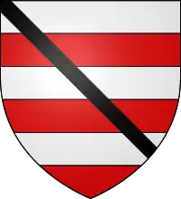![]() Arms of John de Soules; Barry of six argent and gules, a bendlet[1] | |