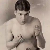 On 14 May 1926, Brown lost to superb black American boxer Chick Suggs, in a fifth round technical knockout at New York's Madison Square Garden. The bout was one sided throughout, with Suggs doing as he pleased, and though Brown withstood the punishment, the referee humanely stopped the bout 2:23 into the fifth round.[15] Suggs scored no knockdowns but outboxed Brown throughout the match, cutting him around the mouth and nose.[16]
