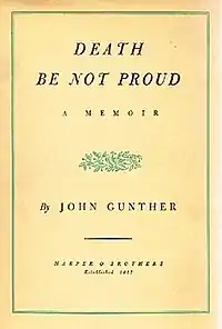 The vignette, “Death Be Not Proud,” the profits from which went to children's cancer research, was probably Mr. Gunther's most vividly memorable work.[6]
