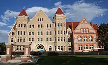 During the 1960s and 1970s, as Providence hotels and department stores fled to the suburbs, Johnson and Wales took the opportunity to expand its downtown presence.[9] The university purchased the former Crown Hotel in 1966, and both the former Dreyfus Hotel and the Gladdings Department Store building in 1975.[9]