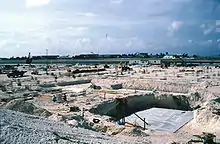 Prior to the beginning of destruction operations at JACADS, the atoll held about 6.6% of the entire U.S. stockpile of chemical weapons.[1] Chemical weapons were stockpiled on Johnston Atoll beginning in 1971,[2] including weapons transferred from Okinawa during the 1971 Operation Red Hat.[1] Some of the other weapons stored at the site, including Sarin (GB) and VX Nerve Agent, were shipped from U.S. stockpiles in Germany in 1990. The shipments followed a 1986 agreement between the U.S. and Germany to move the munitions.[3] The remainder of the chemical weapons were a small number of World War II era weapons shipped from the Solomon Islands.[4] In 1985, the U.S. Congress mandated that all chemical weapons stockpiles at Johnston Atoll, mostly mustard and nerve agents, be destroyed.[5]