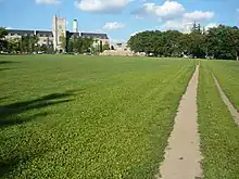 This is a photograph of Johnston Green, a large grassy area in front of Johnston Hall