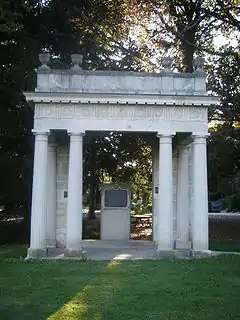 This is a photo of the Portico, the entrance to the old Johnston Hall that stood prior to 1931 that was preserved when the building was torn down. It now sits on Johnston Green