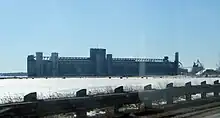 The Port of Johnstown was built in 1931 to replace a grain elevator located closer to the town of Prescott which operated from 1895 until 1931.[9] Prior to the construction of the St. Lawrence Seaway, most grain carrying ships were too large to bypass the rapids between Prescott and Montreal; the port was built as a transfer point for the grain was needed.[9] Once the Welland Canal was constructed in the late 1920s, the grain elevator near Prescott became inadequate and construction began on the current Port of Johnstown in 1928.[9] The thousands of piles used for the building's foundations were supplied by local farmers.[9] The port was built with a 5 million bushel capacity.[7]