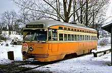 Johnstown Traction Company (JTC) was a public transit system in Johnstown, Pennsylvania, United States. For most of its existence it was primarily a street-railway system, but in later years also operated rubber-tired vehicles. JTC operated trolley (tram) service in Johnstown from February 23, 1910 to June 11, 1960. Johnstown was one of the last small cities to abandon trolley service in the United States.[1] It was also the smallest city to acquire a fleet of PCC cars and acquired trackless trolleys at a late date compared to larger transit properties. Many of the 1920s-era cars went directly to museums; however, none of the 17 PCC streetcars were saved. Efforts to sell the 16 then-surviving PCC cars intact were unsuccessful, and in 1962 they were scrapped, but many of their components were salvaged and sold to the Brussels, Belgium tram system,[2] reused in the last series of single PCC trams (7156โ7171), which ran from 1970 until February 2010.