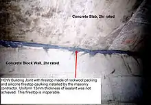 A building joint is a junction where building elements meet without applying a static load from one element to another. When one or more of these vertical or horizontal elements that meet are required by the local building code to have a fire-resistance rating, the resulting opening that makes up the joint must be firestopped in order to restore the required compartmentalisation.
