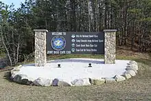 The Joint Base Cape Cod is a state-designated joint base created by the Commonwealth of Massachusetts and the United States War Department in 1935.[1] Governor James Curley signed the state bill to allocate and purchase land for a military facility, and establishing a formal commission to manage this new state military property and personnel. After 22,000 acres (8,900 ha; 89 km2; 34 sq mi) of land was secured on Cape Cod, the Massachusetts National Guard began erecting tents and a basic training program in the following year.[1] Formerly the Massachusetts Military Reservation, it was renamed in 2013 to Joint Base Cape Cod by Massachusetts, although it has no federal recognition.[2][3]