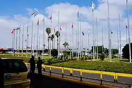 Following the closure of the main International Arrivals and Departures terminal after a fire, a parking facility was converted into the temporary International Arrivals terminal.[29]