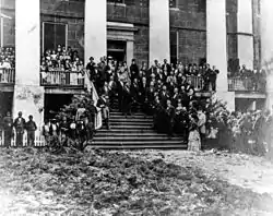 During his time in South Carolina, Gibbs also became involved in Republican political activities during Reconstruction. Gibbs participated in a meeting of black delegates who drafted a petition demanding that the educated of both races be allowed to vote, suggesting he may have had some elitism. The petition also said, "we do ask that if the ignorant white man is allowed to vote, that the ignorant colored man shall be allowed to vote also."[27] Gibbs noted that, "If we can secure, for the next ten years, three clean shirts a week, a tooth brush, and spelling-book to every Freedman in South Carolina, I will go bail (a thing I seldom do) for the next hundred years, that we will have no more slavery, and both whites and blacks will be happier and better friends."[28]