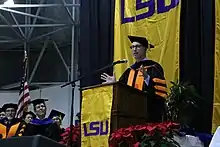 ![]() Dean Jonathan Earle speaks at the Roger Hadfield Ogden Honors College Convocation in August 2017. | |