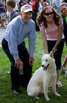 The co-ed service fraternity Alpha Phi Omega has helped to care for the canine Jonathan since the 1970s.[3]
