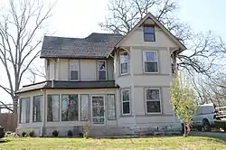 The Jones House is a historic house at 220 Bush Street in Sulphur Springs, Benton County, Arkansas. It is a 2+1⁄2-story wood-frame structure with a T shape and cross-gable roof. The front facade, one of the ends of the crosspiece of the T, has beveled corners with the roof overhanging above the second floor, an Eastlake element. A porch wraps around the stem of the T, which extends to the south. It is supported by turned columns and features a spindled frieze. Built c. 1896, it is a fine and well-preserved example of Eastlake-style architecture.[2]